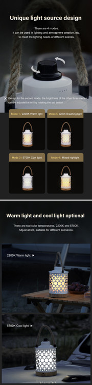 دو دمای رنگ نور 2200K (گرم) برای فضای دنج و 6500K (سرد) برای نوردهی واضح و روشن در کمپها.