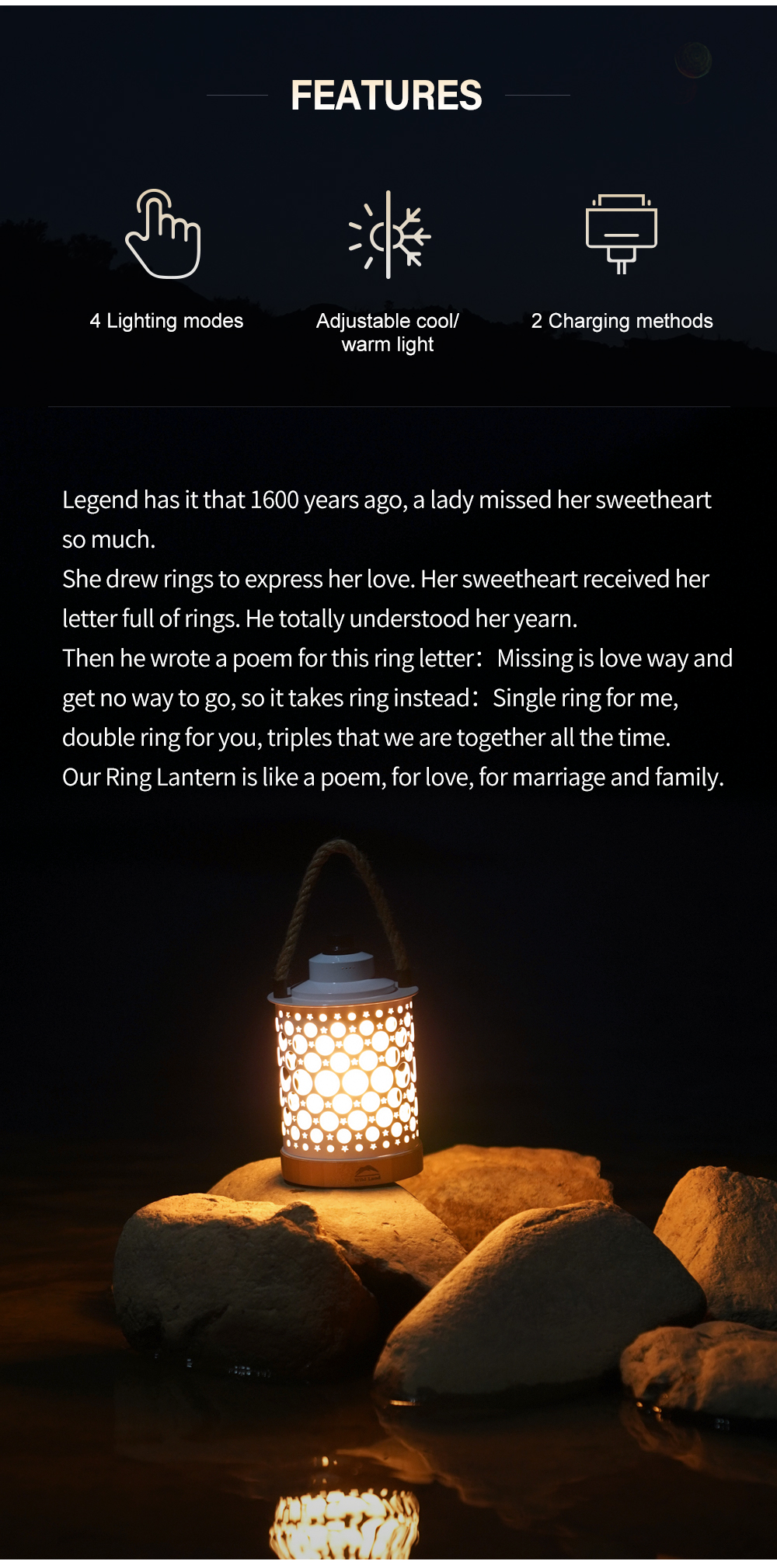 چراغ Wildland Ring Lantern یک چراغ LED قابلحمل و قابلشارژ است که با طراحی خاص و مدرن، هم برای استفاده در فضای باز مثل کمپینگ، سفر، باغ و چمنزار و هم برای فضاهای داخلی مانند هتل، کافه یا اتاق غذاخوری مناسب است.
