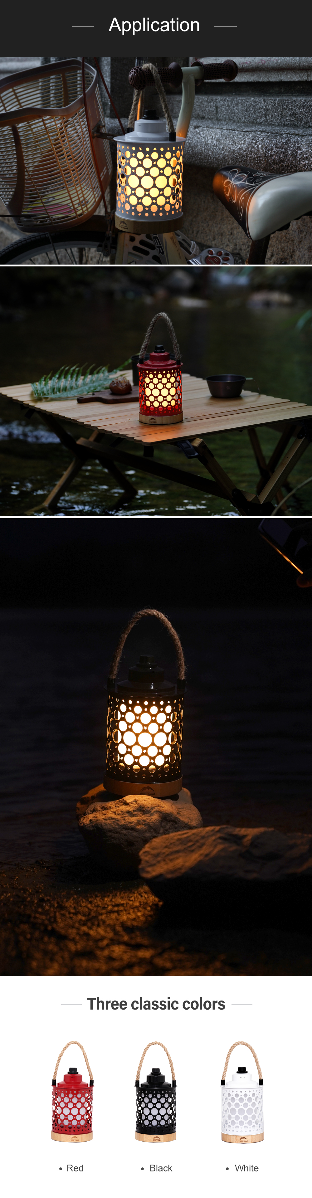 این چراغ با بدنهای ترکیبی از چوب بامبو، فلز و ABS مقاوم طراحی شده که هم زیبایی بصری دارد و هم دوام بالا برای استفاده در شرایط سخت طبیعت را تضمین میکند.