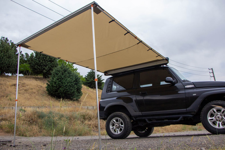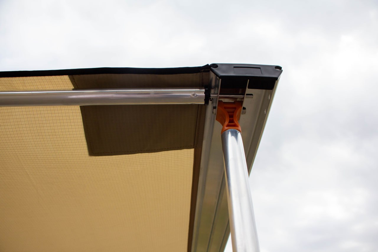 پارچه سایبان از متریال ضدآب و مقاوم در برابر UV ساخته شده و در برابر وزش باد و نور شدید خورشید عملکرد پایداری دارد. فریم آلومینیومی تقویتشده آن، علاوه بر استحکام بالا، وزن کلی محصول را کاهش میدهد تا نصب آن برای یک نفر نیز امکانپذیر باشد.
