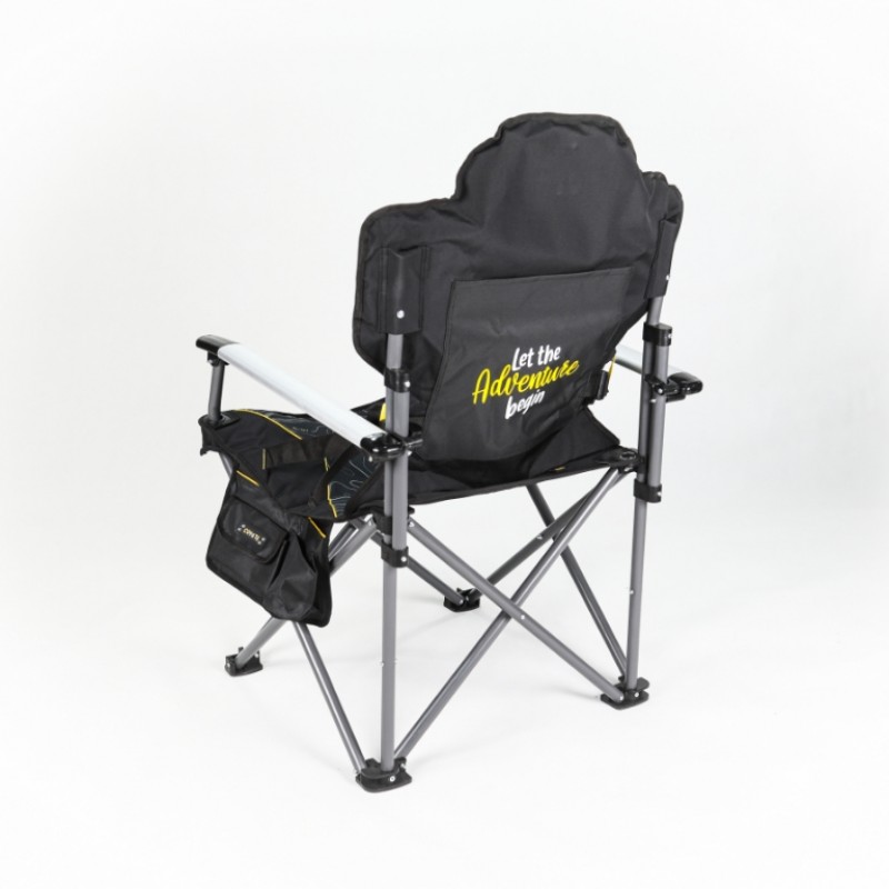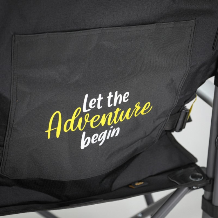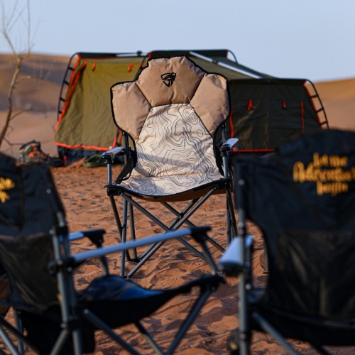 صندلی ادونچر با وزن ۶ کیلوگرم ، تحمل وزن ۱۵۰ کیلوگرم را داراست ، پارچه ی استفاده شده در رویه صندلی برزنت ضد سایش است و برای راحتی بیشتر یک لایه ابر داخل صندلی کار شده . دسته های صندلی آلومینیوم آنادایز شده هستند ، در فریم صندلی از آهن ۲۲ میلیمتری با رنگ الکترواستاتیک وارداتی استفاده شده که بالاترین کیفیت و دوام را در نوع خودش داراست.
