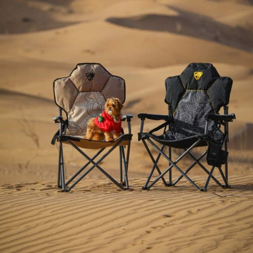 در این مدل از پارچه با طرح اختصاصی کایوت استفاده شده است و این صندلی با ارتفاع بلند تر از مدل ادونچر نشیمن راحت تری دارد و به کمک بالشتک تعبیه شده در صندلی از گردن حمایت میکند