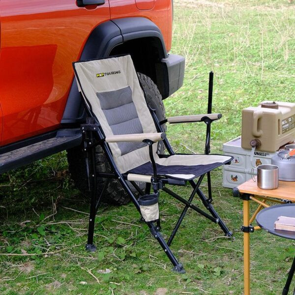 پشتی این صندلی بهصورت چرخان طراحی شده و از زاویه ۹۰ تا ۱۵۵ درجه قابل تنظیم است. این ویژگی باعث میشود بتوانید در حالتهای مختلف، از نشستن عادی گرفته تا لم دادن برای استراحت یا تماشای ستارگان، راحتی کامل را تجربه کنید.