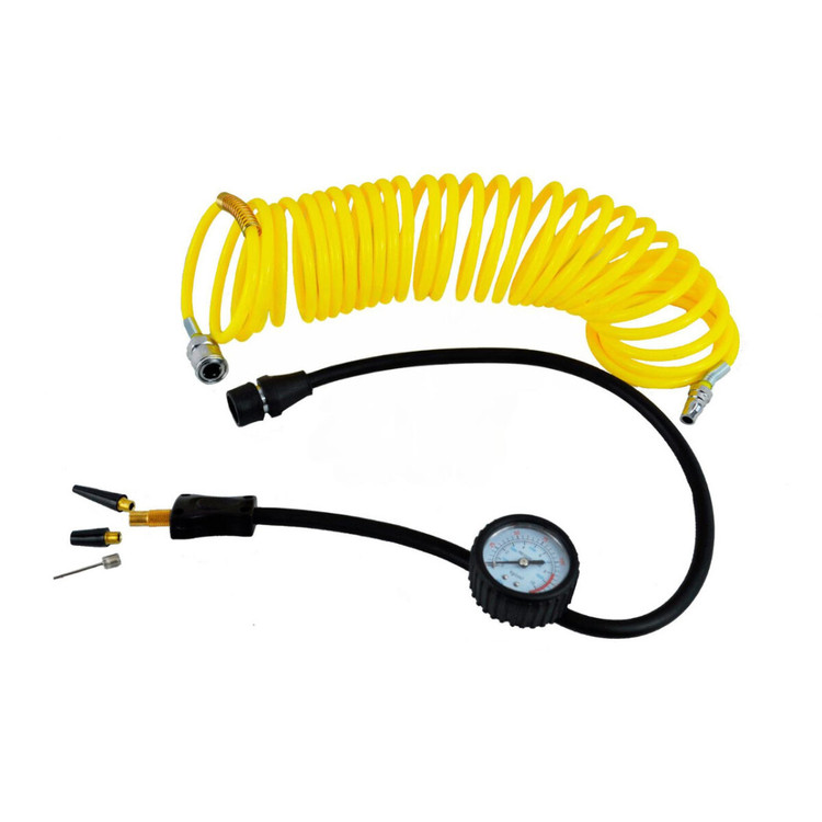 دارای کابل اتصال باتری، شلنگ باد فنری، نازلهای مختلف برای کاربردهای متفاوت