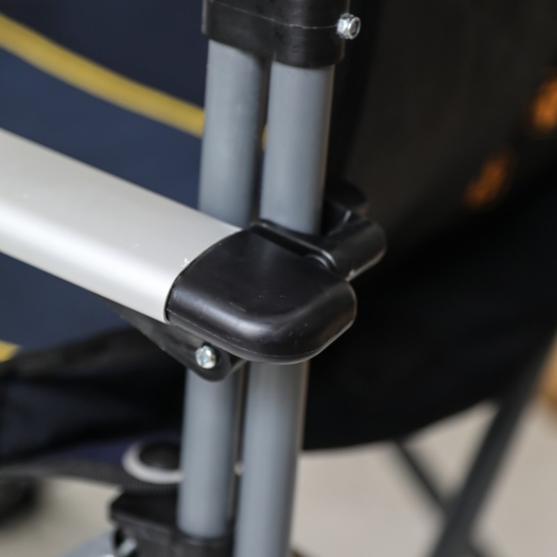 دستههای آلومینیومی ارگونومیک، علاوه بر سبکی، هنگام نشستن یا بلند شدن تکیهگاه مطمئنی فراهم میکنند. پایههای ضدلغزش نیز باعث میشوند صندلی روی زمینهای ناهموار، شنی یا چمنی کاملاً پایدار بماند.