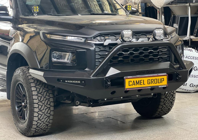 سپر جلوی آفرودی KMC T9 مدل Camel یکی از حرفهایترین سپرهای تقویتشده مخصوص پیکاپ T9 است که برای رانندگان آفرود و سفرهای سخت طراحی شده. این سپر با ساختار فولادی مستحکم و طراحی زاویهدار، حفاظت بسیار بالایی در برابر ضربه، برخورد با موانع، صخرهها و ناهمواریهای مسیر فراهم میکند.